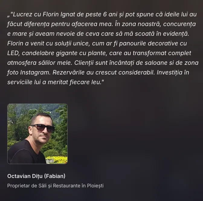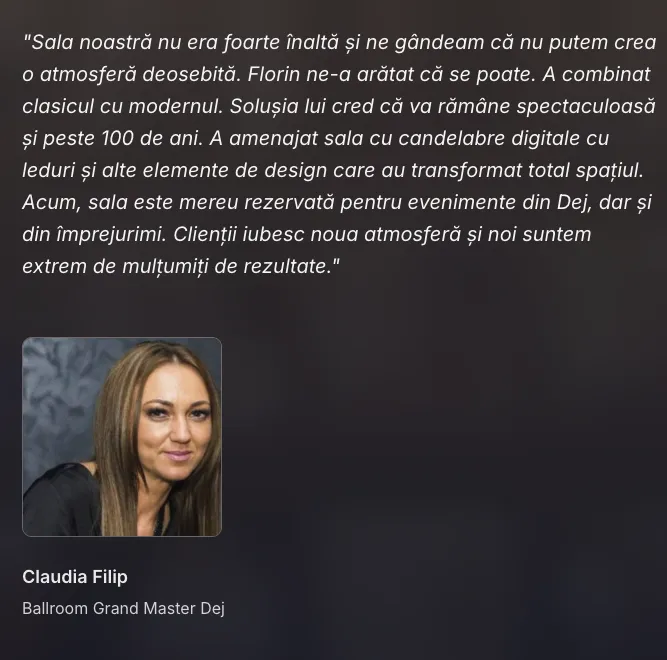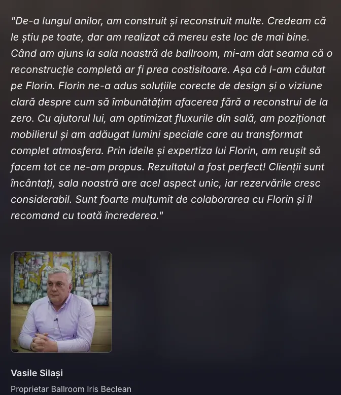 De peste 30 de ani, sunt recunoscut ca cel care transformă o sală banală în una cu adevărat remarcabilă și mult mai profitabilă decât înainte.